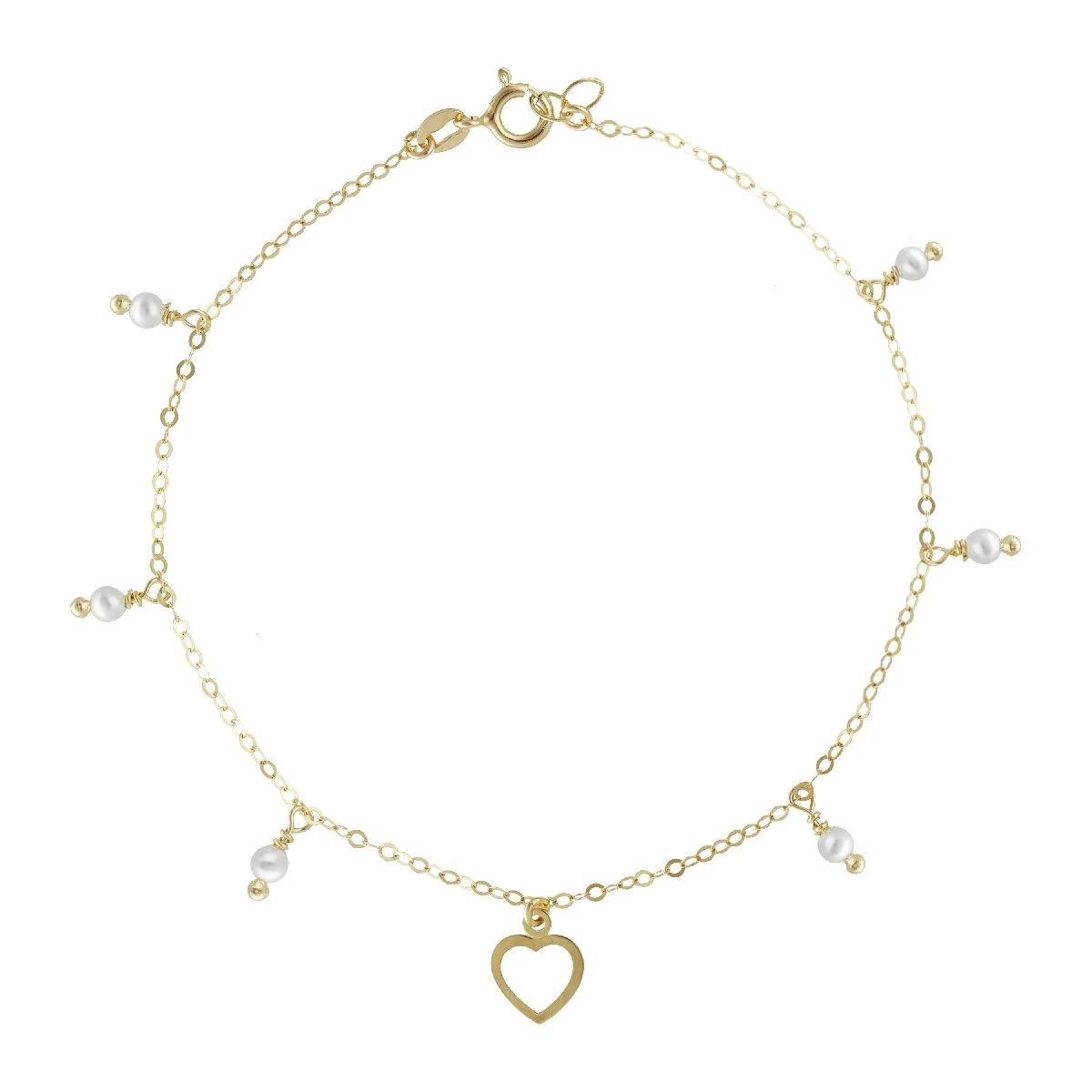 Victoria Cruz A4246-00DB Zilveren Enkelbandje Met Pareltjes En Hartje – 20+6cm – 1,6mm Dikte – 3mm Pareltje – Hartje 8mm – Zilver – Verguld/Goud Op Zilver
