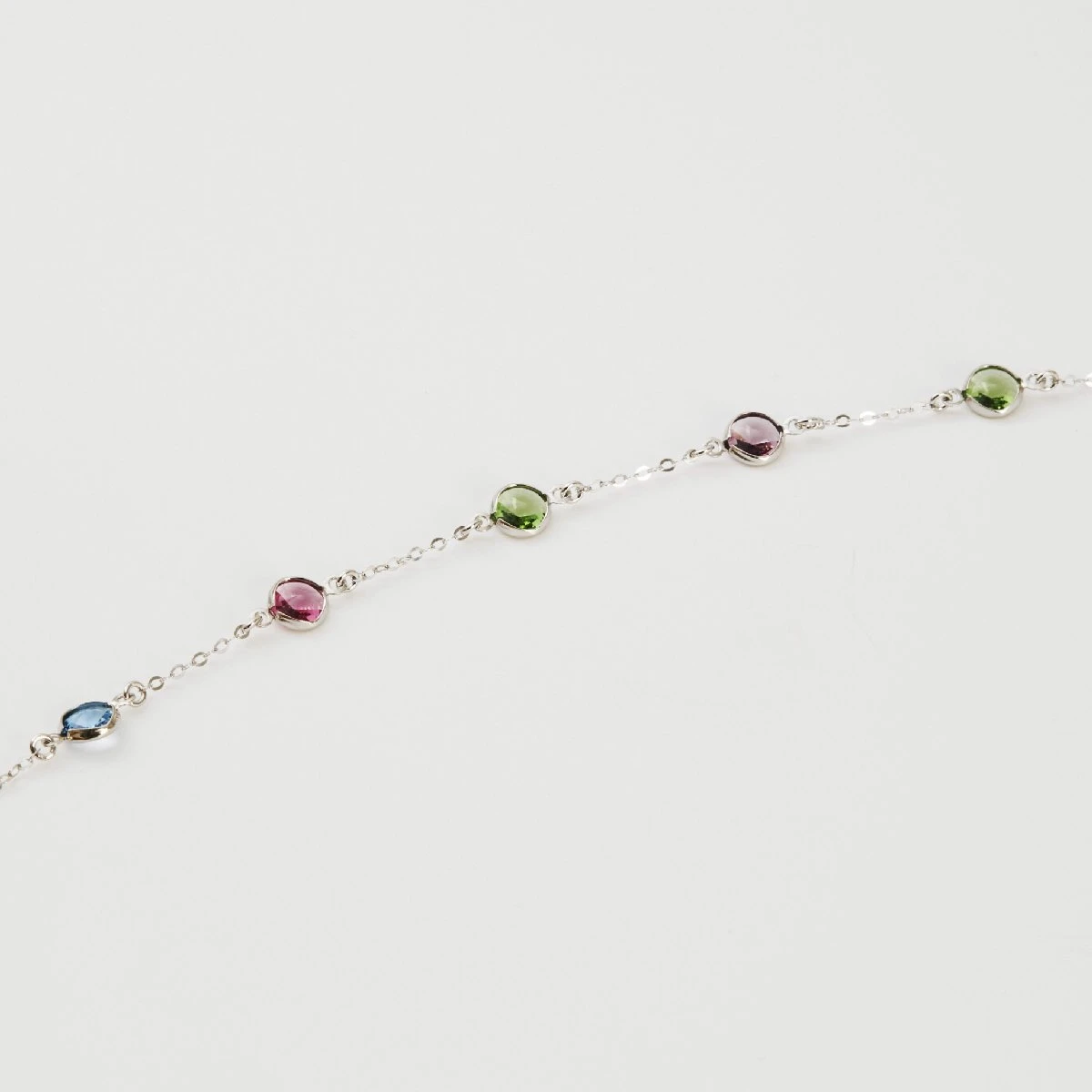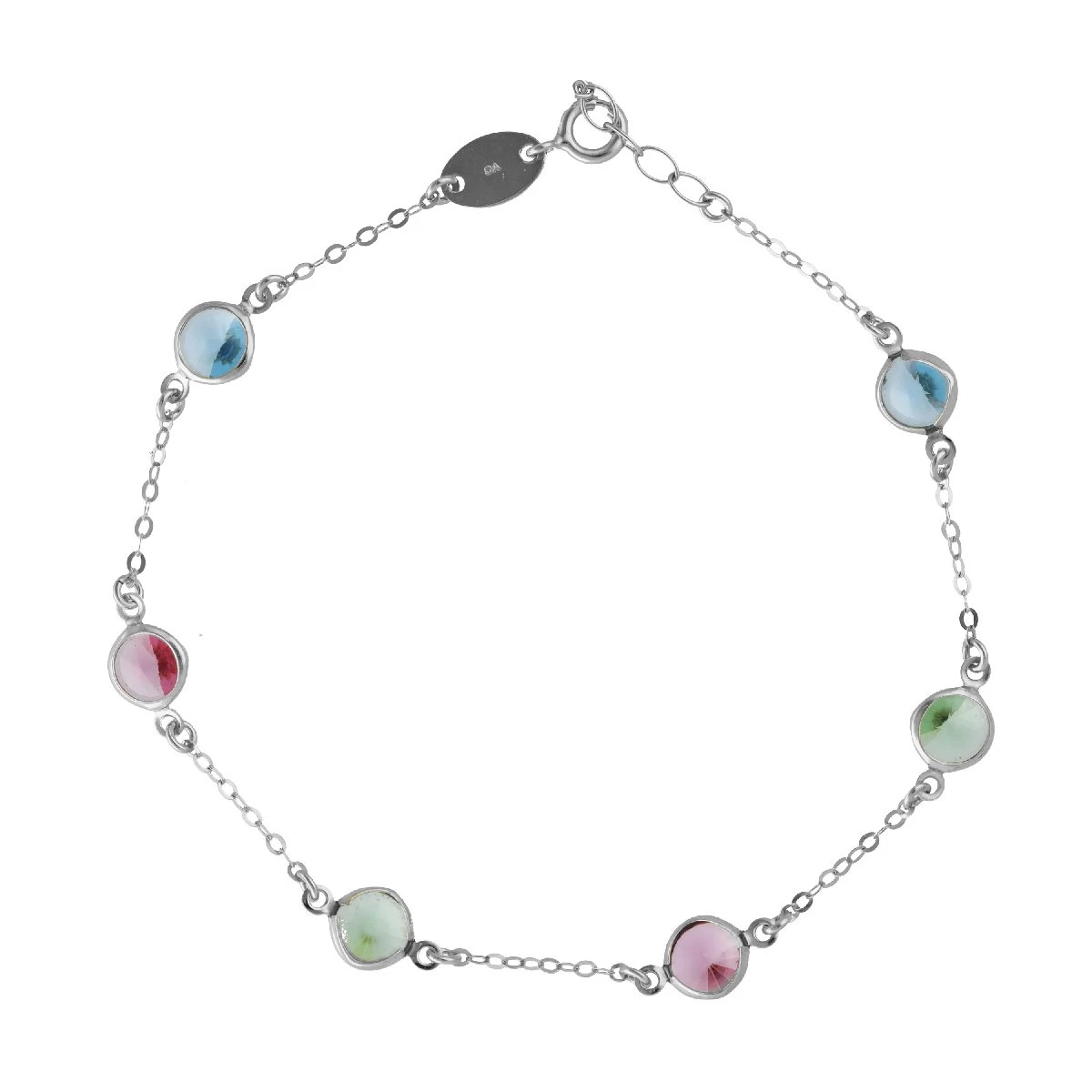 Victoria Cruz A4251-MHB Zilveren Enkelbandje Met Gekleurde Kristal Steentjes – 20+6cm – Multi Kleuren 7mm – 1,5mm Dikte – Rhodium – Zilver