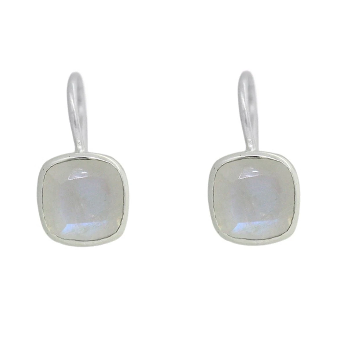 Oorhangers gemaakt van 925 sterling zilver met 7 mm Regenboog Maansteen edelstenen. De oorhangers hebben een afmeting van 20 x 9 mm.